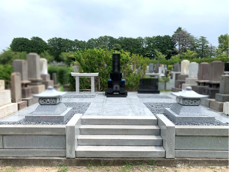 角置灯篭は新規製作で、墓地のサイズに合わせて低めの灯篭をご提案させていただきました。